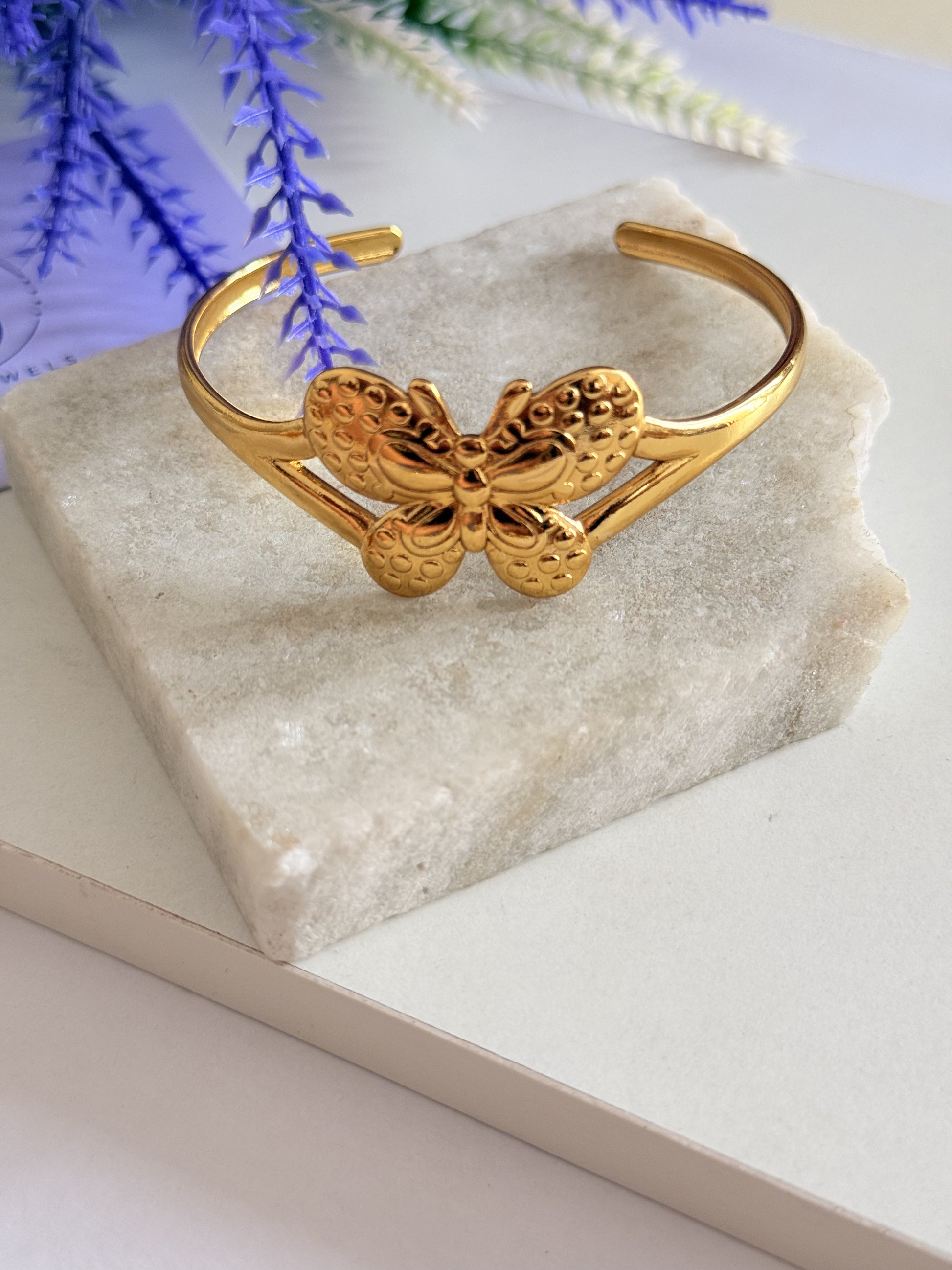 Expertly crafted with 18K gold plating, thisbutterfly bracelet is waterproof and hypoallergenic for daily wear. The openable style and adjustable fit make it perfect for all wrist sizes. Say goodbye to tarnishing and hello to timeless elegance.