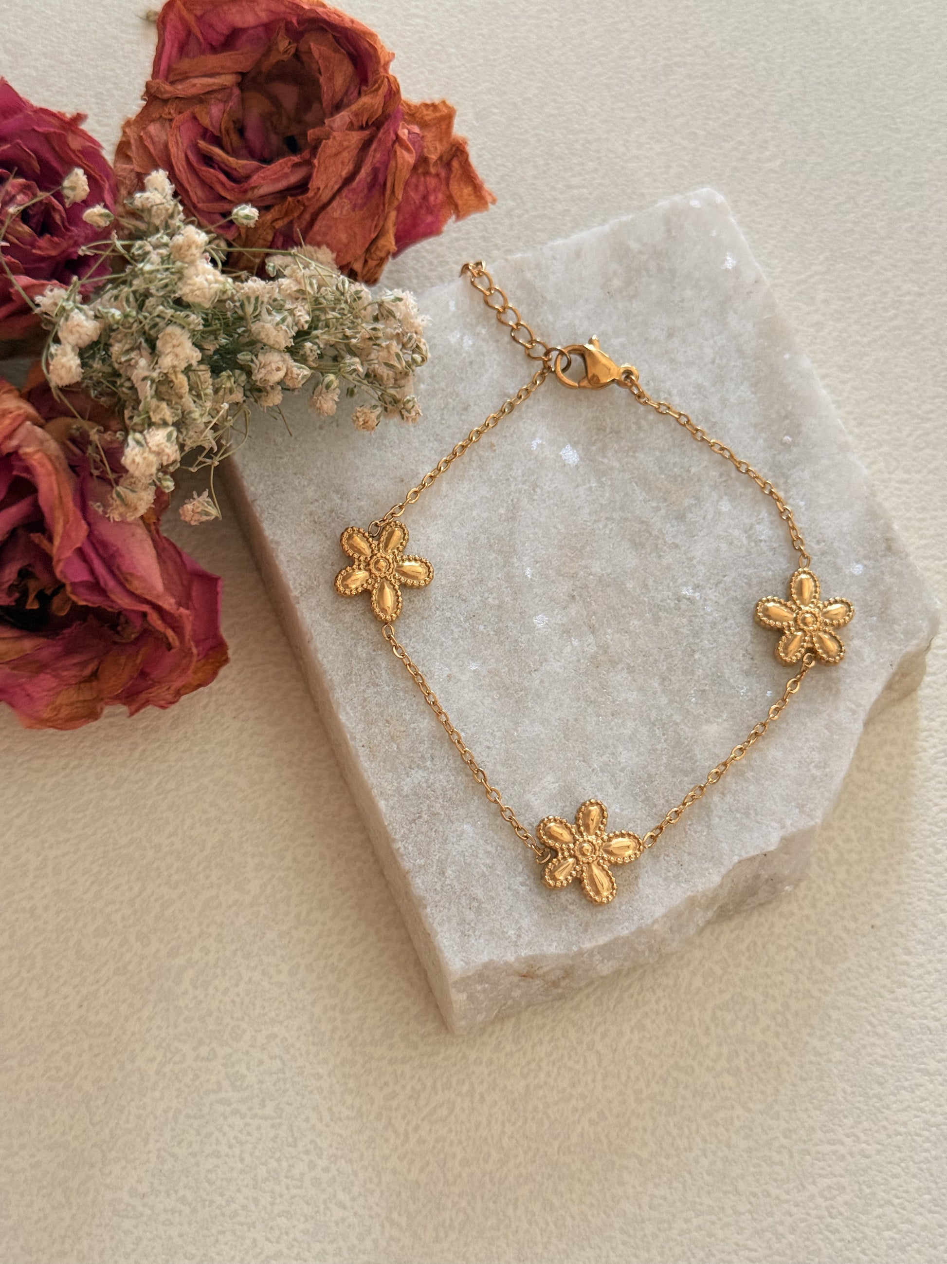 Stay stylish and allergy-free with our Floral Bloom Bracelet. Featuring 18 K gold plating, this accessory is waterproof and anti-tarnish for daily wear. Perfect for any occasion, it's hypoallergenic for worry-free accessorizing.