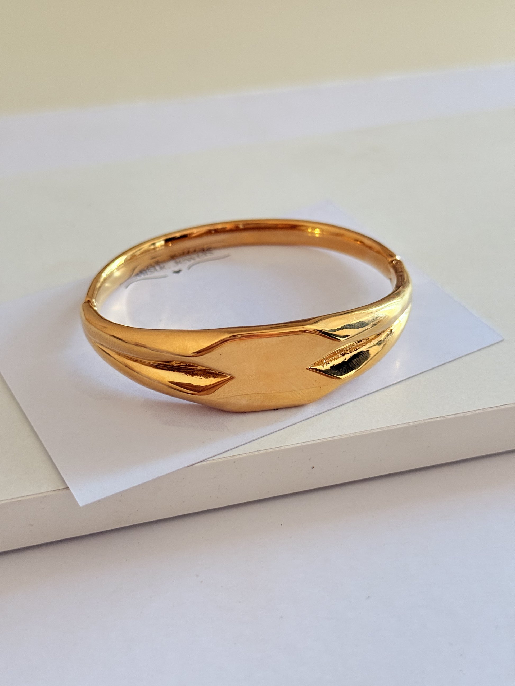 As an expert in jewelry, this Golden Wave Bangle Bracelet provides a stunning addition to your daily wear. This piece is crafted with 18K gold plating, ensuring a waterproof and anti-tarnish finish. Its hypoallergenic design allows for comfortable wear all day long. Elevate your style with this exquisite bangle.