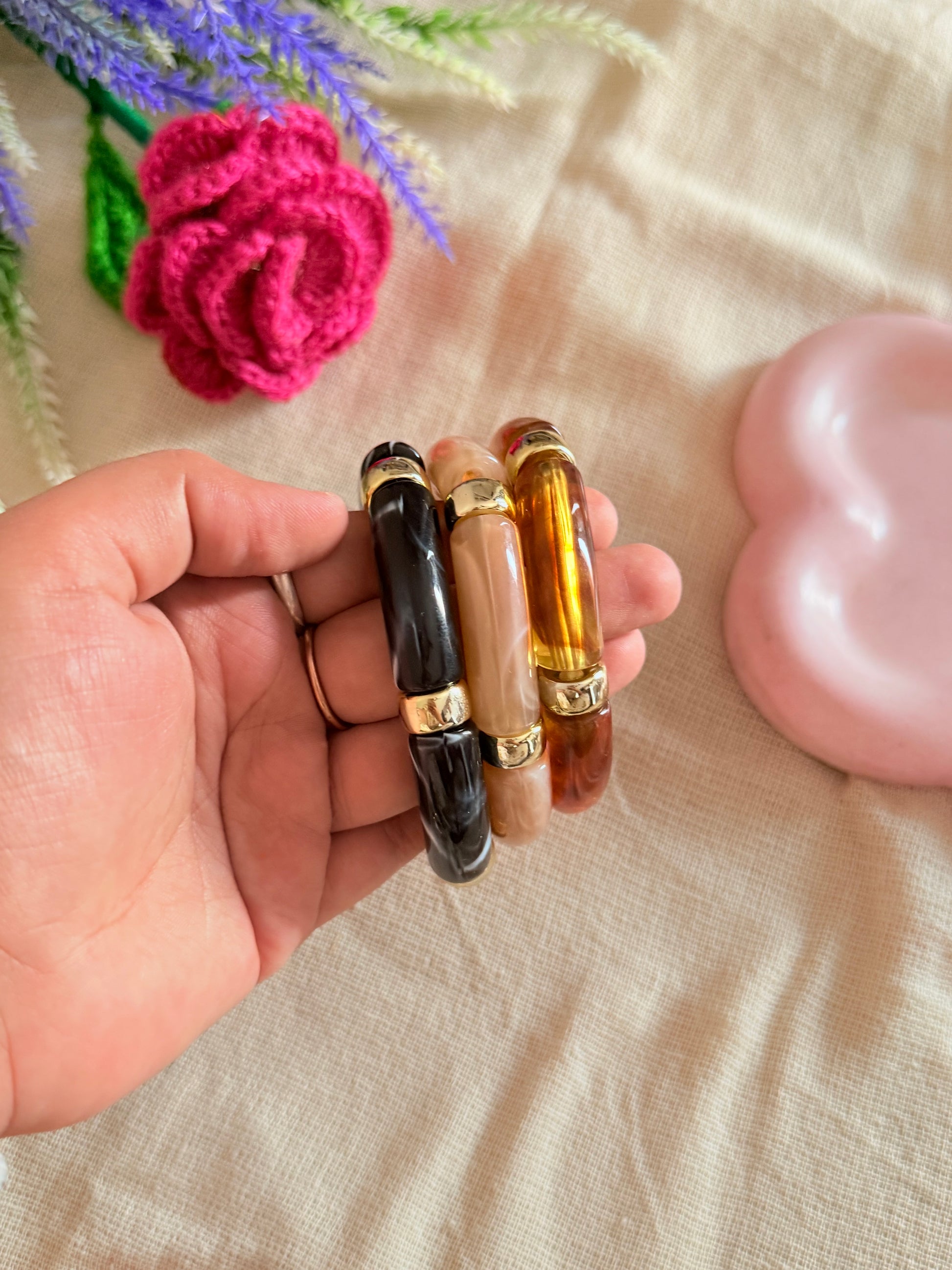 Elevate your style game with our Retro Acrylic bracelet. Influenced by celebrity fashion, this stacking bracelet adds a touch of nostalgia to any outfit. Made from high-quality materials, this bracelet is the perfect statement piece.This retro bracelet boasts superior stretchability due to its high-quality elastic material. Perfect for any wrist size, it provides optimal comfort and flexibility. Elevate your style with this versatile accessory.
