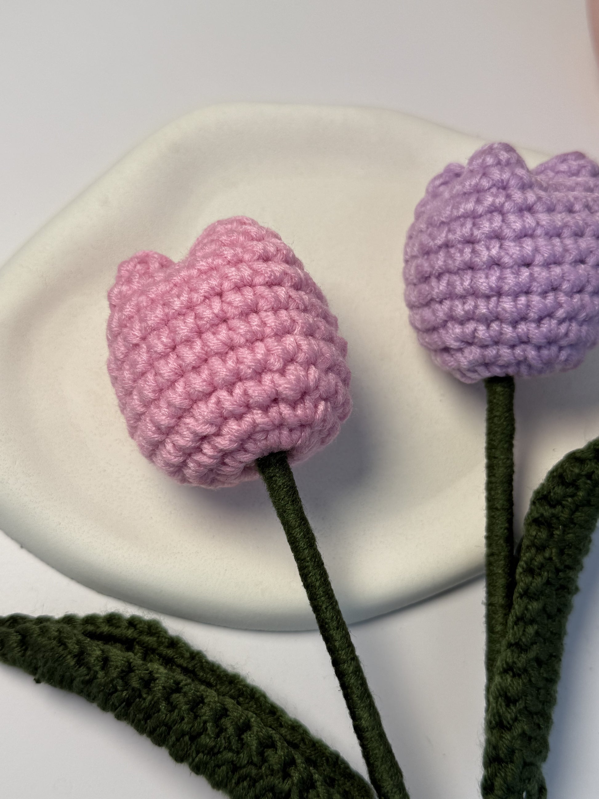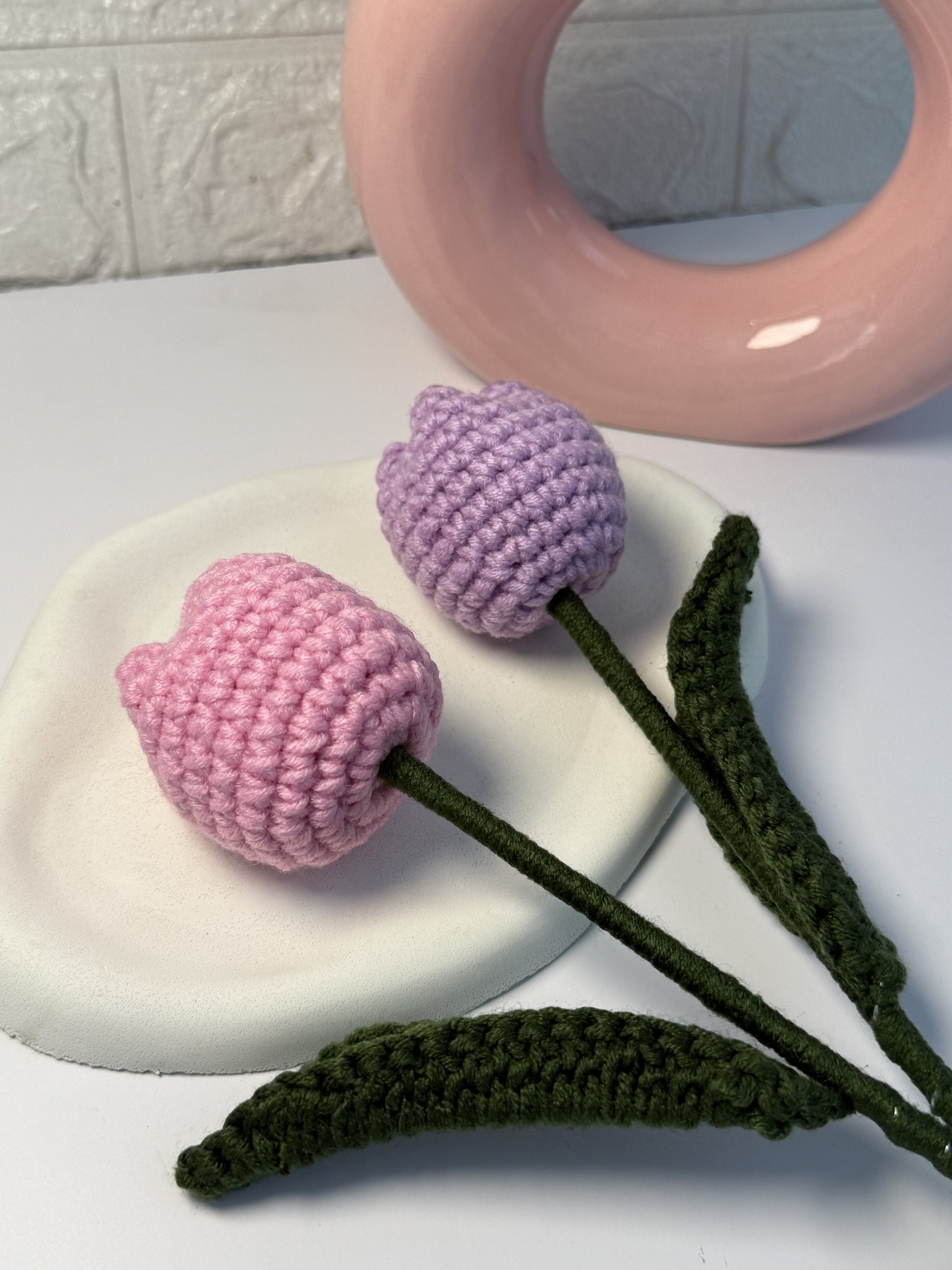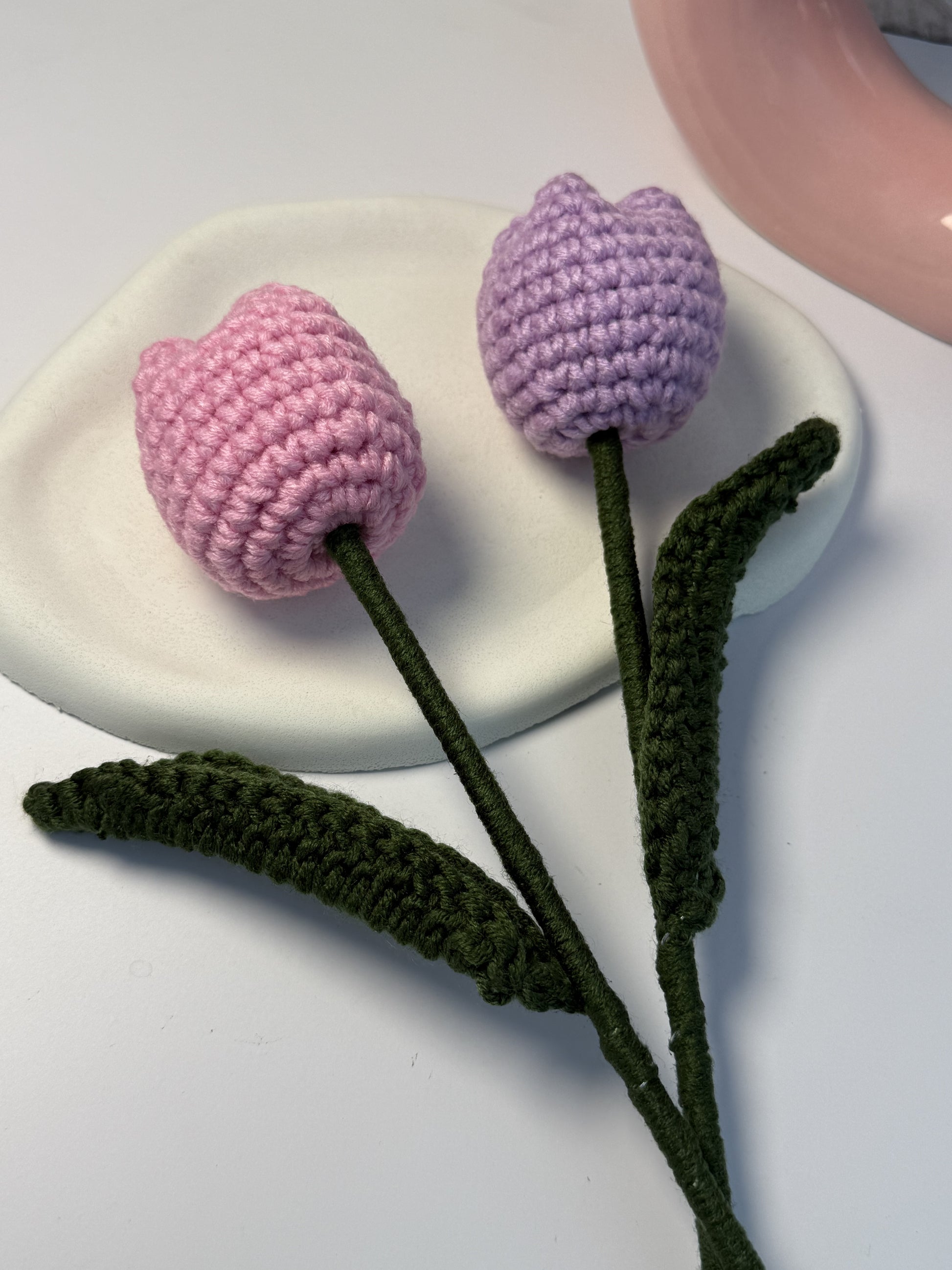 These beautiful tulip flowers offer a unique touch to any decor with their handmade crochet design. Using high-quality yarn, they are meticulously crafted to add a touch of elegance and charm to any space. Bring the beauty of nature indoors with these stunning and durable floral decorations.